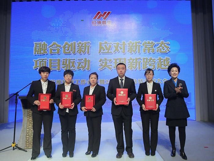 3月30日上午,红博商业2015年度经济工作会议暨2014年度总结表彰大会在红博西城红场举行,总经理王丽梅向近300名员工代表作了《融合创新,应对新常态;项目驱动,实现新跨越——红博商业2014年工作总结暨2015年工作部署报告》。