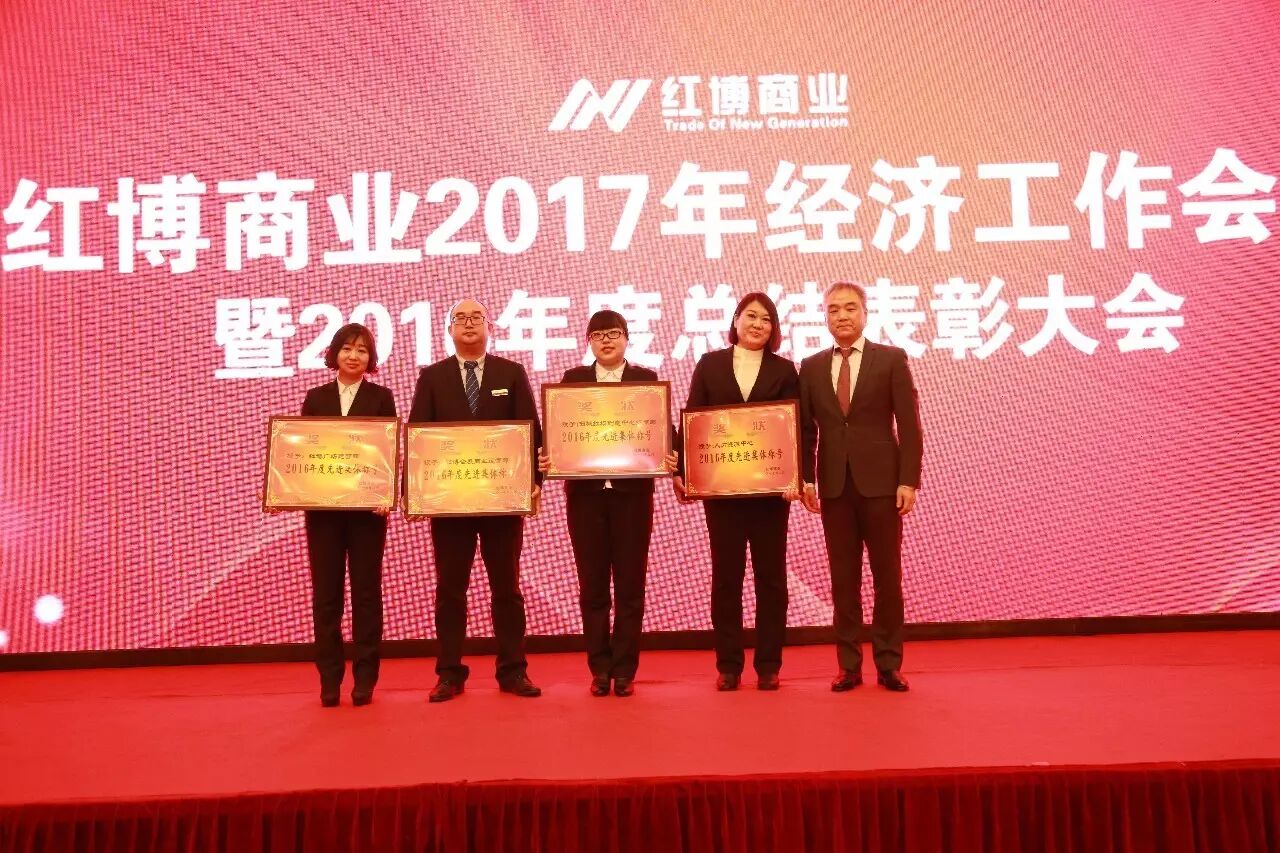 红博商业人力资源中心总监陈霞宣读《2016年先进个人、先进集体、先进个人标兵表彰奖励决定》,对2016年表现突出的团队及个人进行表彰并现场颁奖。