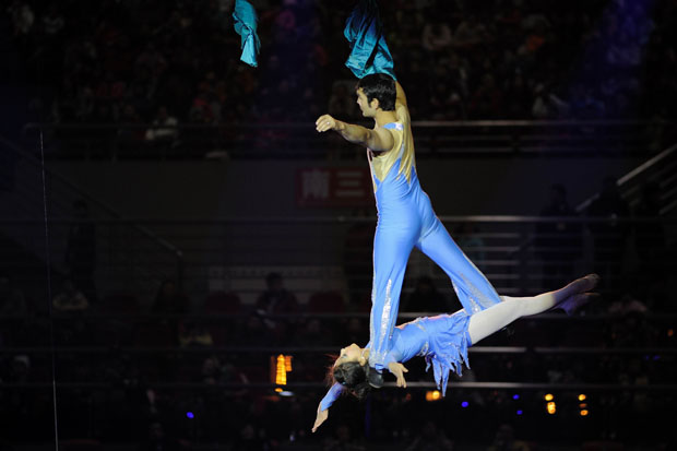 表演者身轻如燕,蒙眼走在无任何防护措施的钢丝上,在座的孩子们无不发出唏嘘声。高空走钢丝、太空骑摩托、马术大比拼、绸吊与吊环……一个个惊险而刺激的表演让孩们大开眼界。