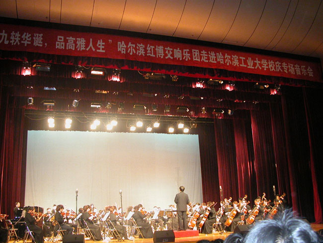 据了解,拥有百年历史,中国最早的交响乐团——哈尔滨交响乐团,自去年与红博商业“文企合作”以来,以红博交响乐团名义分别进行了欧洲三国的巡演,举办了哈尔滨新年音乐会,4月22日、23日该团携《卡门》、《匈牙利舞曲》、《雷电波尔卡》、《北京喜讯到边寨》、《茉莉花》中外经典曲目走进哈尔滨工业大学、哈尔滨工程大学,为师生演奏。受到广大师生的热烈欢迎,特别是与电影屏幕互动的交响演奏,将声、光、影,紧密的结合起来。