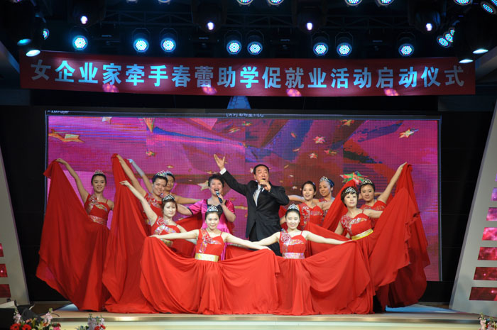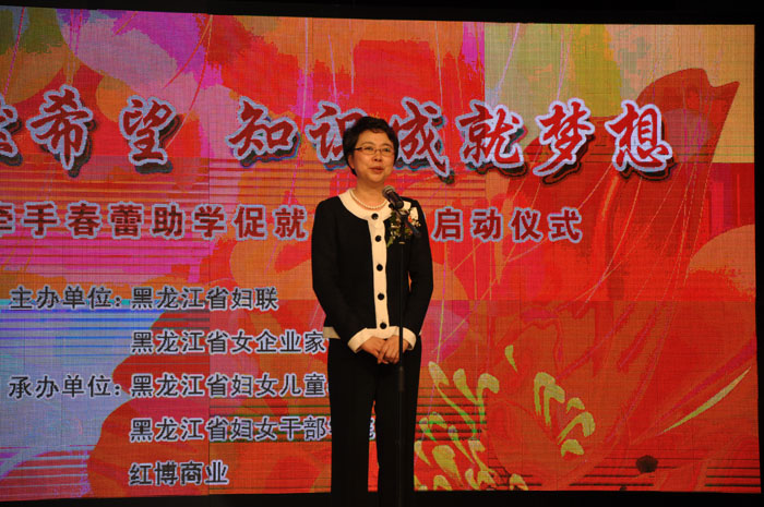 3月5日14时,由黑龙江省妇联举办的女企业家牵手春蕾助学促就业活动启动仪式在红博会展购物广场中心舞台举行。