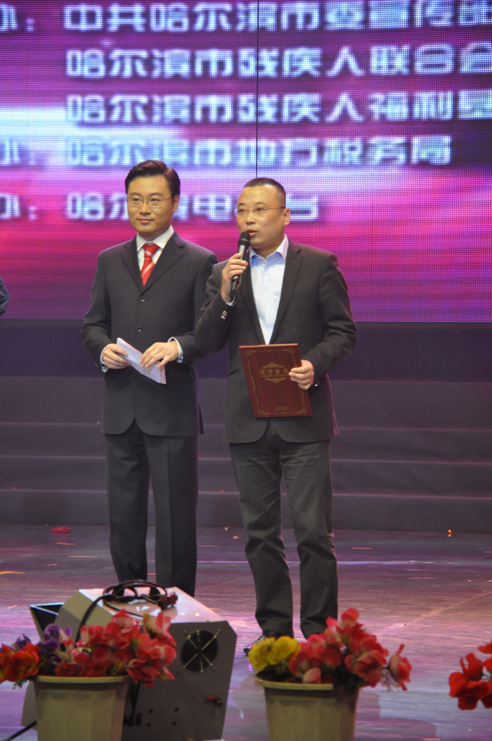 13日下午14时,在哈尔滨电视台千米演播厅举行了 “高擎生命的尊严” 哈尔滨市残疾人艺术团大型慈善晚会,红博会展购物广场有限公司副总经理于立野代表红博商业及《红博•当红不让》栏目组出席活动现场,并向哈尔滨市残疾人艺术团捐赠爱心资金5万元,这也是《红博•当红不让》栏目组继走进军营、走进长春、举行大型募捐活动的第四次爱心行动。