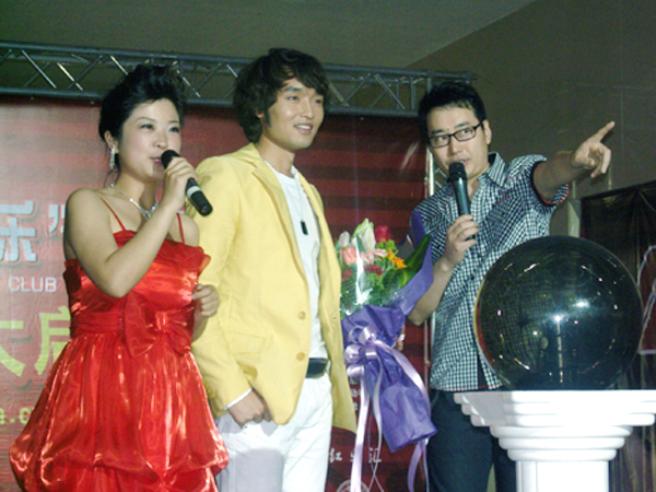 随后主持人请出了本次活动的神秘嘉宾——《感动天感动地》及《擦肩而过》的演唱者歌星宇桐非上台献唱,现场气氛热烈之极,不少歌迷都雀跃不已,甚至有大庆赶来的歌迷团冲上舞台与歌星互 动献花,红博中央百货内澎湃着青春、时尚、激情的气息。