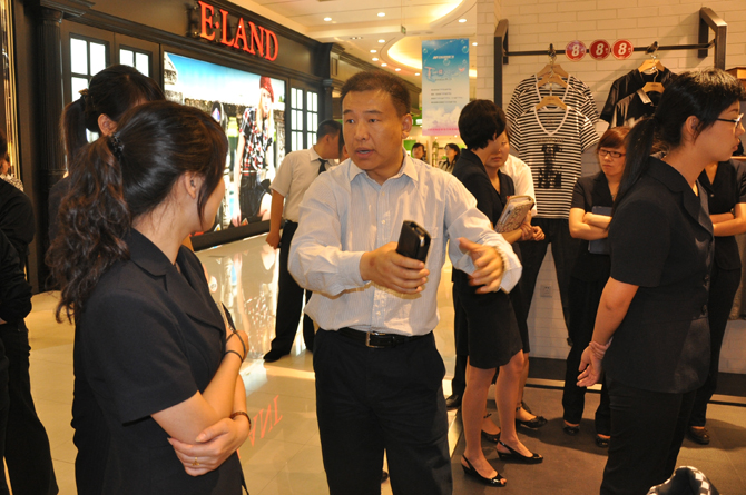 培训活动主要由运营部负责人和员工参加,其他部门也排出代表观摩学习。对大家每日的卖场店面陈列、模特摆放、新款服饰搭配以及顾客接待礼仪等方面存在的问题,猪股老师以国际化视野和独特专业的角度为大家悉心讲解,并在现场分析示范,从商场角落的每一个细节,都要求做到符合店面陈设的整体风格,并引导顾客的视线,以达到吸引顾客、促成销售的目的。每位参加培训的员工都亲自动手,共同感受培训带来的乐趣。