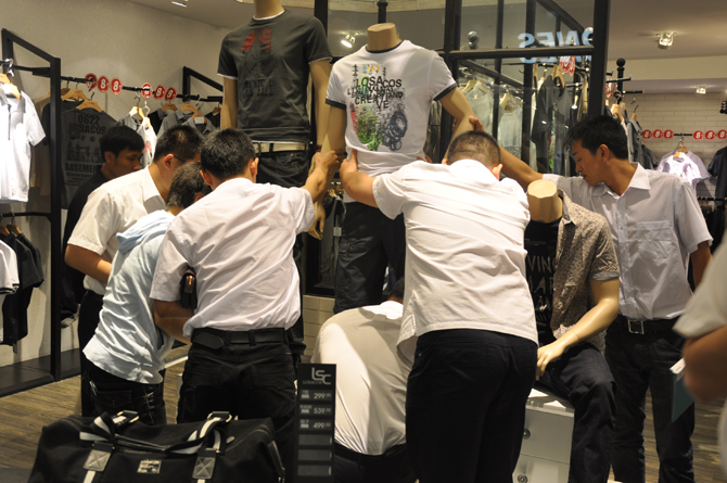 培训人员共同装扮后焕然一新的商场店面