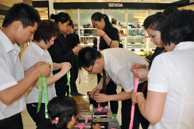 由红博商业人力资源中心组织的为期三周的专柜VP培训和CS顾客接待服务培训课程在6月10日至11日已经进入到包箱区和鞋区的卖场实践阶段。被重新装置的包厢区和鞋区店面规范有序、焕然一新,方便了络绎不绝的来往宾朋,经调整后典雅时尚的商场陈列和培训后专业亲善的顾客礼仪在父亲节活动期间起到了良好的宣传促销作用。