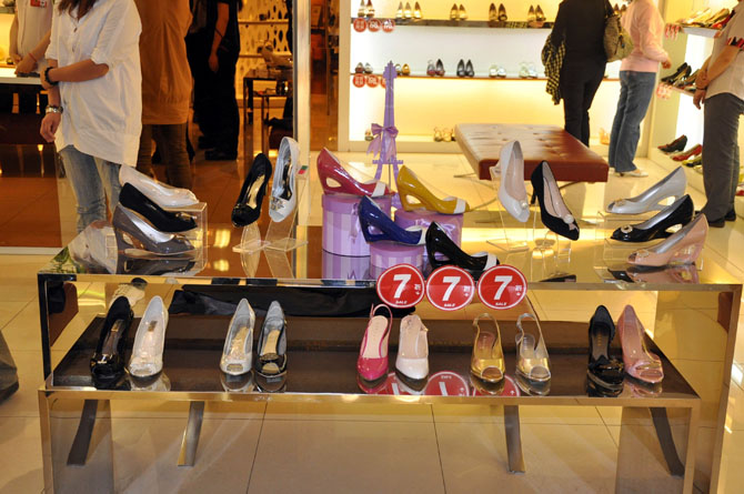 著名日式管理培训专家猪股胜次老师为培训人员讲解鞋区VP陈列课程
