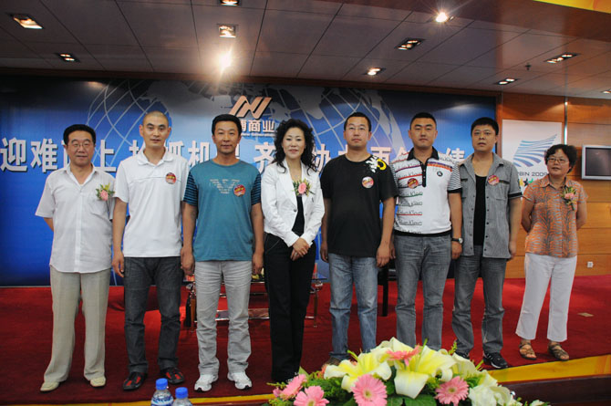 红博商业王丽梅总经理为优秀业者佩戴胸章并合影留念