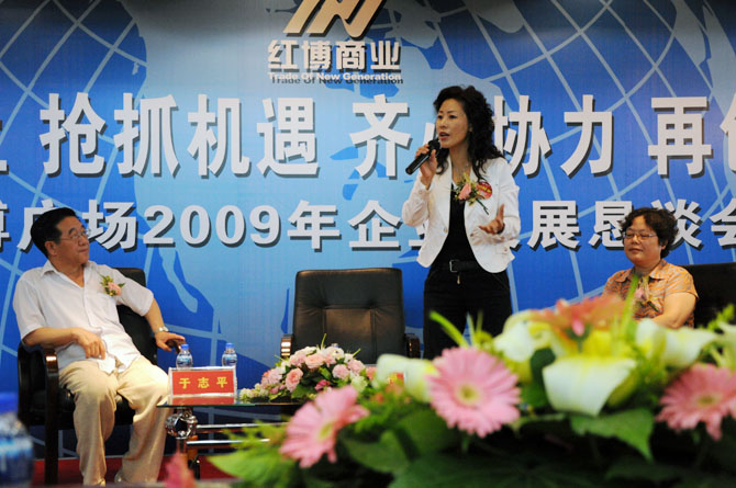 王丽梅总经理在会上对红博广场上半年的工作进行了回顾,并通过与业者的互动一同对今后的发展思路进行了探讨。红博商业经济顾问于志平教授与王朗玲教授向大家介绍了金融危机对我国及本地区经济发展的影响,对危机形势下如何坚定信心,抢占市场进行了分析。