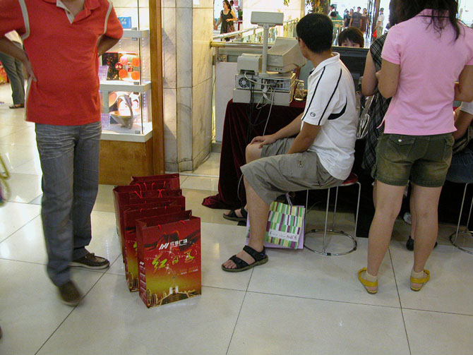 7月4日是红博广场09年第二次红日子活动的第一天。充满诱惑力的“低于批发价,抄底大抢购”,使商场客流量猛增,全天销售额较上一周六大幅上涨(具体数据在统计中)。业者也对红日子活动交口称赞,问梅斓精品在红日子第一天的销售额较上周六翻了一番,平时每天零售平均能卖出两件的大象精品不到中午就卖出去10多件……