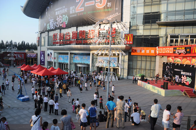 自7月22日起,红博会展购物广场推出了“邂逅五月天 盛夏大抢购”活动。商场服饰、鞋品全场2—5折,消费满400元惊喜大抽奖活动,当日消费满额赠五月天演唱会门票。一系列的优惠活动引起了消费者的兴趣与关注。