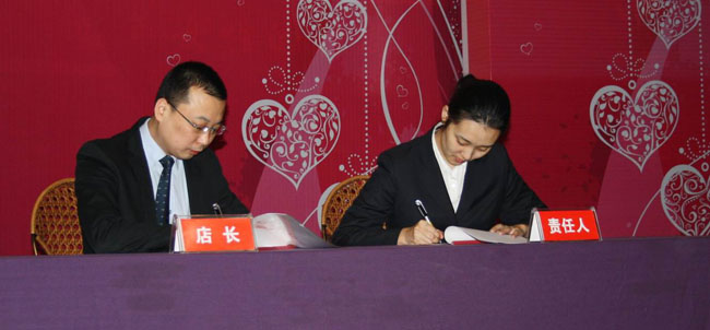 店长于立野与各部门部长签订合同书,各部门部长带领部门员工表决心