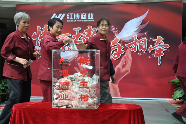 红博商业总经理王丽梅告诉记者:一个企业的成熟与发展源于社会各界的支持。作为一个企业要有感恩情怀和社会的责任感。红博就是一个将感恩和责任作为企业文化和使命精髓的企业。目的就是为国家、为社会、为群众和谐和富强。