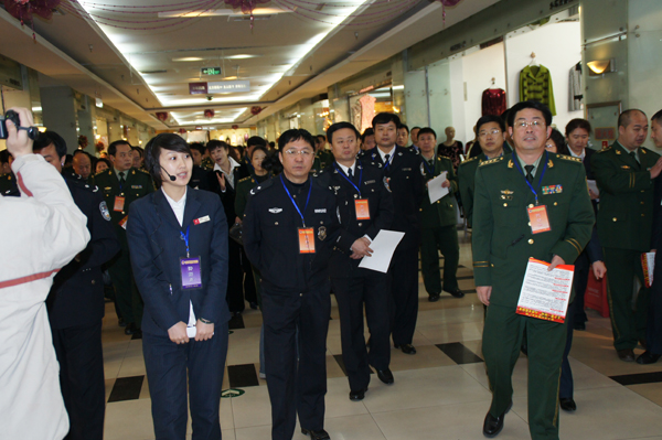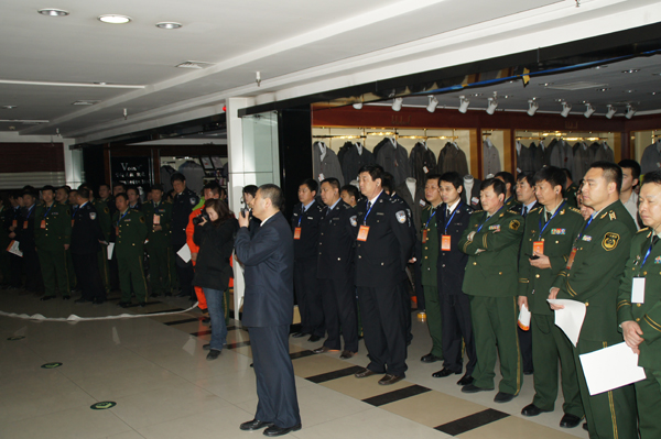 当天上午,参加会议的100多位来自全省各地的消防安全工作负责人分两批来到红博广场进行了现场参观。红博广场以“四个能力”(即检查消除火灾隐患能力、扑救初期火灾的能力,组织疏散逃生能力和消防宣传教育能力)的建设为主线做了经验介绍,同时还为代表们进行了现场消防疏散与扑救抢险演练。
