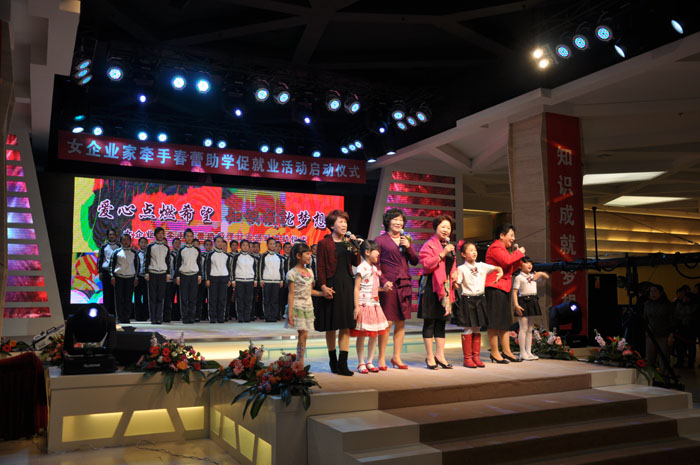 3月5日14时,由黑龙江省妇联举办的女企业家牵手春蕾助学促就业活动启动仪式在红博会展购物广场中心舞台举行。