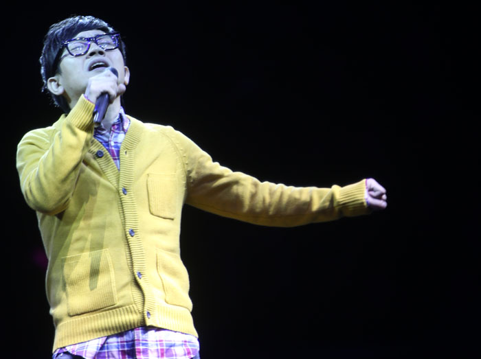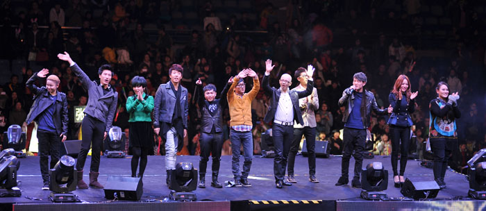 这场被华少称为“好声音最强阵容”的演唱会由杨坤、汪峰领衔,会集了金志文、权振东、丁丁、金池、平安、张玮、李代沫、张赫宣等十几位好声音人气学员。“中国好声音”十强学员中的东北军团一直备受关注,此次回家演出,他们纷纷传达了对东北父老的感谢——“今夜只为哈尔滨而唱!”张赫宣在粉丝的尖叫声中上场,一曲《有多少爱可以重来》引发全场合唱,而《你把我灌醉》则尽显东北纯爷儿们的粗犷。权振东的低调害羞与他张扬不羁的歌声形成了鲜明对比,《三天两夜》唱得痛彻心扉,《亲爱的小孩》又是完全不同的细腻动人。金志文演唱时发生了小插曲,两次伴奏带都出了问题,于是他干脆清唱《为爱痴狂》,全场观众不但对他报以热烈掌声,更齐声合唱,以爱之名,那一曲是这一夜最动人的歌声。
