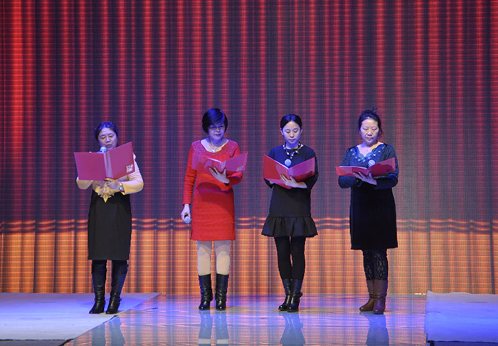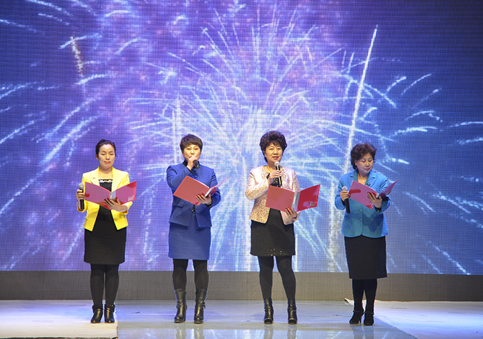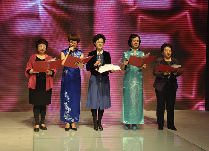 绥化市女企业家商会代表曹文宏、倪云娜、孙艳霞、张秀敏表演诗朗诵《我们是商界玫瑰花》