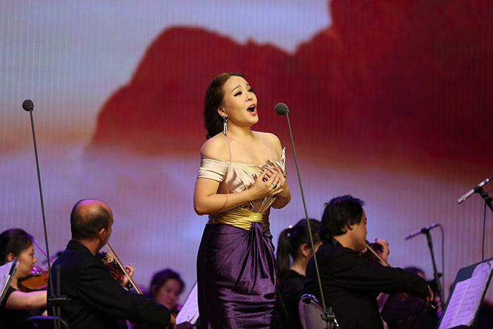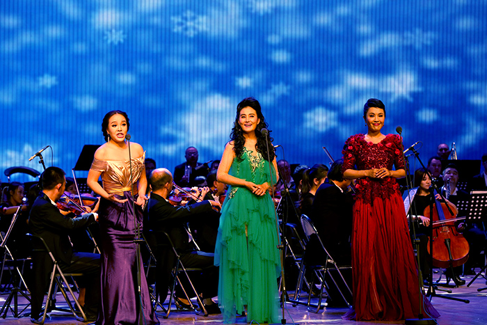 中国三大女高音同台放歌 左起:柯绿娃 尤泓斐 王莹