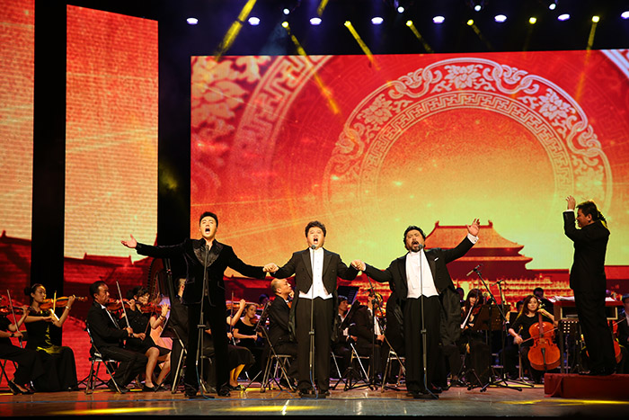 中国三大男高音同台放歌 左起:张英席 薛浩银 魏松