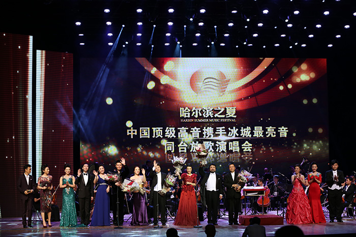 8月14日晚,由市委宣传部主办,哈尔滨日报报业集团、哈尔滨广播电视台、市音乐家协会、红博商业联合承办的“哈尔滨之夏•中国顶级高音携手冰城最亮音同台放歌演唱会”在哈尔滨国际会展中心环球剧场华美启幕。演唱会上,中国六大顶级高音和六位冰城最亮音携手献唱,助阵哈夏,声醉冰城。市委常委宣传部长张立新、市政协副主席杨晓萍出席了本次演出。