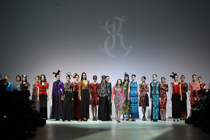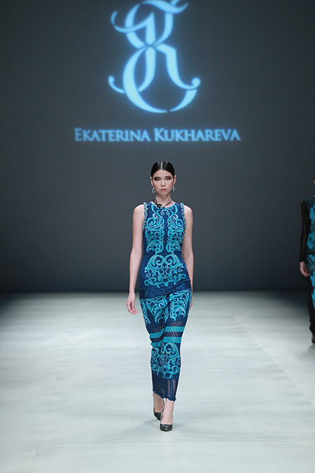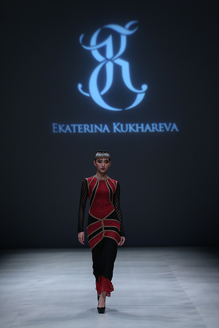 乌克兰设计师Kukhareva(库哈瑞娃)2015春夏时装全球首发,图为首场发布会走秀现场。