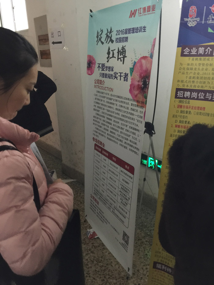 为满足红博事业发展的需求,人力资源中心在经过提前协调准备的情况下,于11月12日在东北农业大学举行了2016届管培生校园招聘的首场宣传会,16日又在哈尔滨商业大学进行了第二场招聘宣传与面试会。