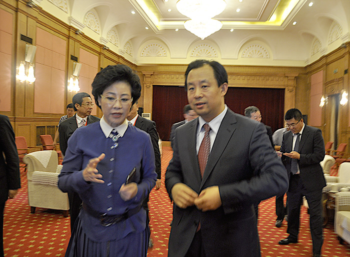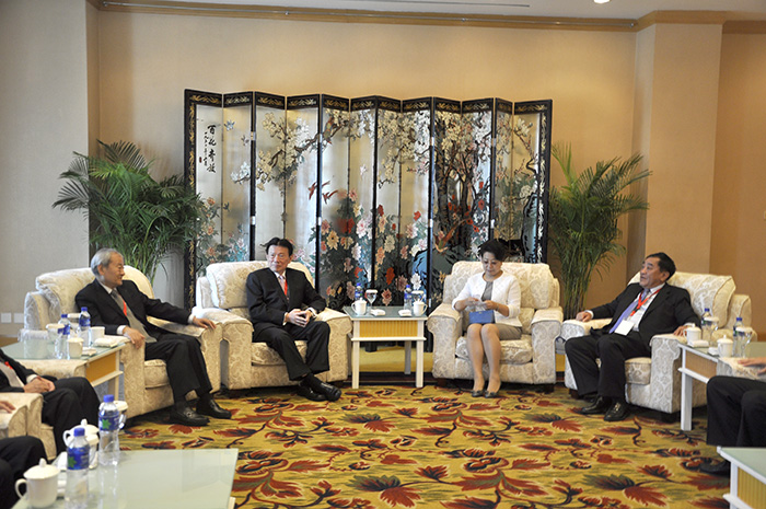黑龙江省省委副书记、省长陆昊在花园村宾馆会见了两岸的纺织界人士