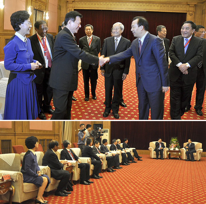 7月1日,黑龙江省省委副书记、省长陆昊在花园村宾馆会见了两岸的纺织界人士,介绍了黑龙江的优势和特点,感谢中国纺织联合会到哈尔滨来,表示欢迎台湾纺织界到龙江发展。陆省长谈到哈尔滨国际时装周时,认为这是龙江时尚产业的代表,并说一定要到红博西城红场看看。时尚产业应该成为支持建设我国品牌服装产业集成中心的构想。王丽梅总经理向省长汇报了工作进展情况。